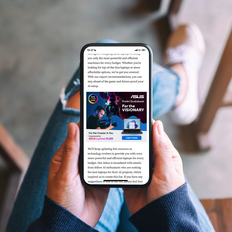 Develop a marketing campaign to inform customers of the benefits of a new range of OLED-powered laptops from ASUS.