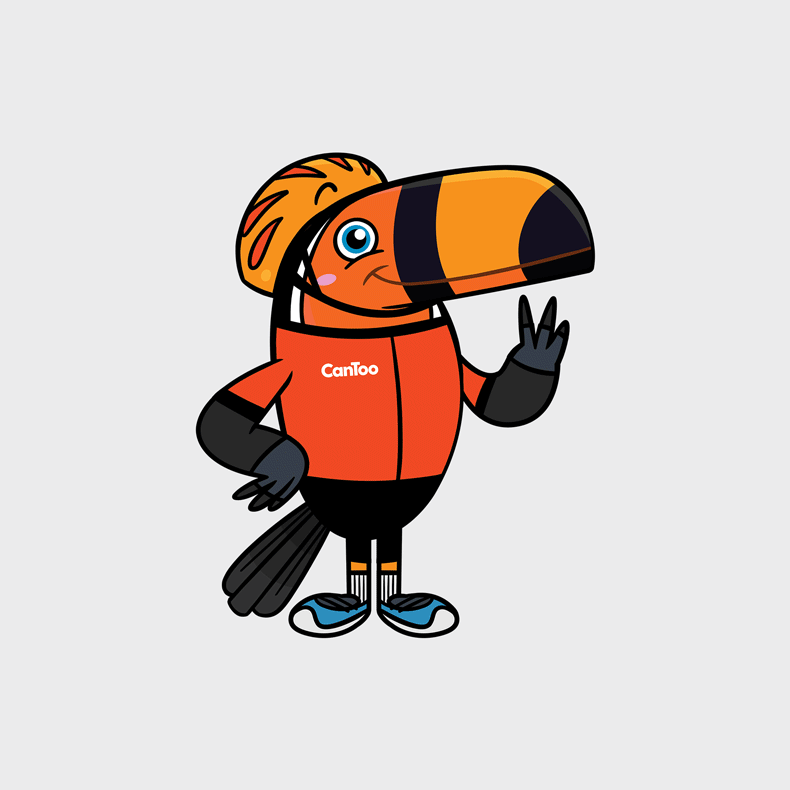 We created the idea of a Toucan character and mascot, based on a simple play on the CanToo name and the distinctive orange of the CanToo brand.