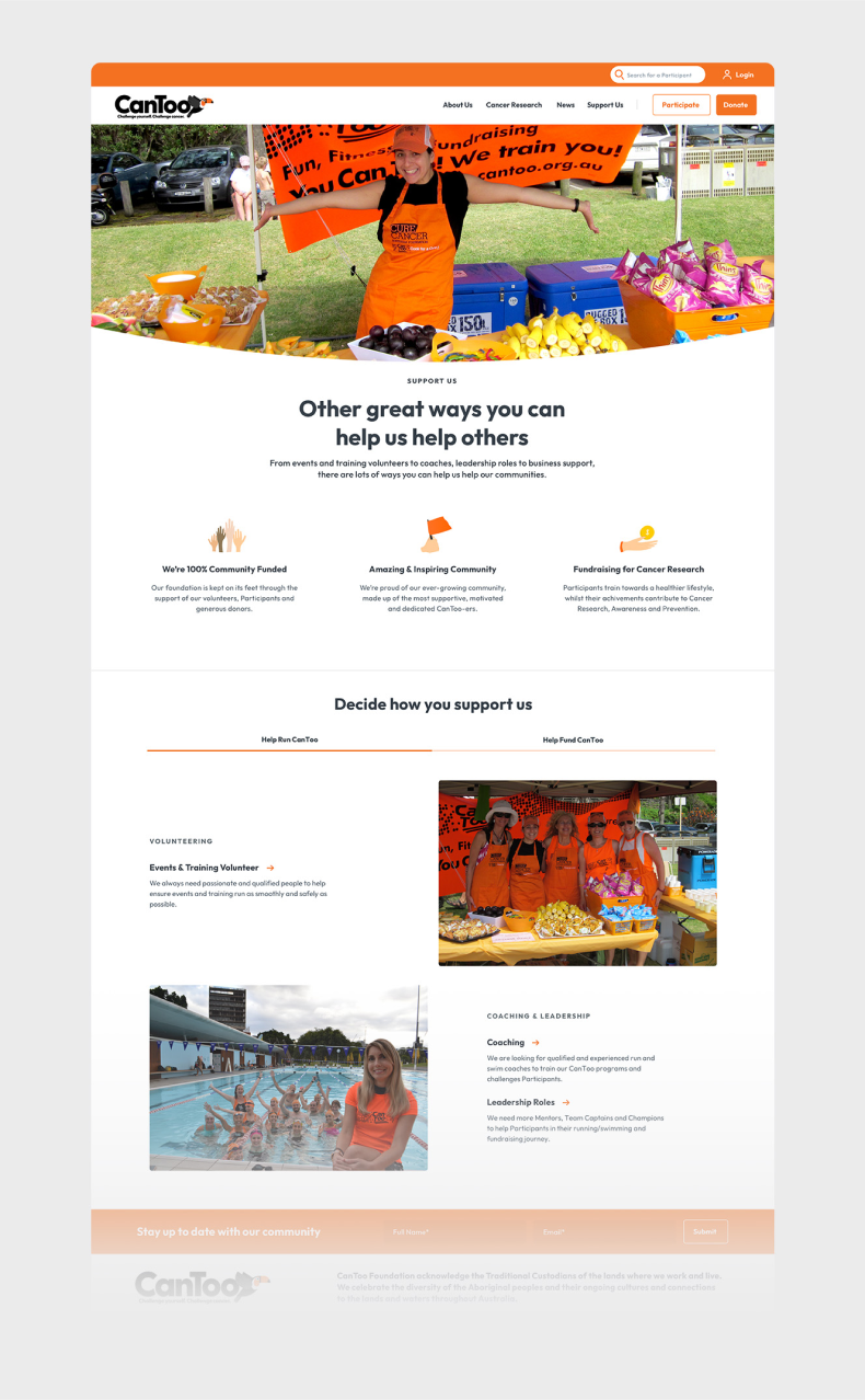 As an organisation, CanToo provide a range of services and programs geared at helping improve the fitness and well-being of thousands of Australians, which in turn facilitates raising valuable funds for important cancer research. However, the brand lacked consistency due to limited internal resources and a clear direction on how to position CanToo to a wider market.