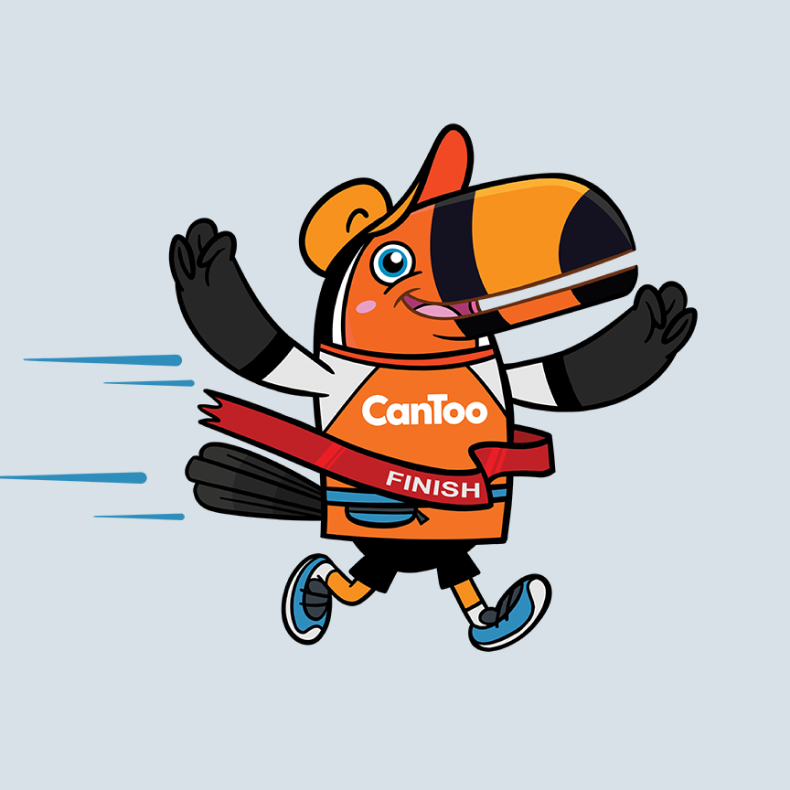 The Toucan is seen as a social creature, often associated with good luck and representing the idea of 'self-confidence', which we felt aligned with what CanToo aims to develop and encourage through their programs. From this, the core logo and character library were developed that could be used across marketing and social content to build the personality and tone of the brand.