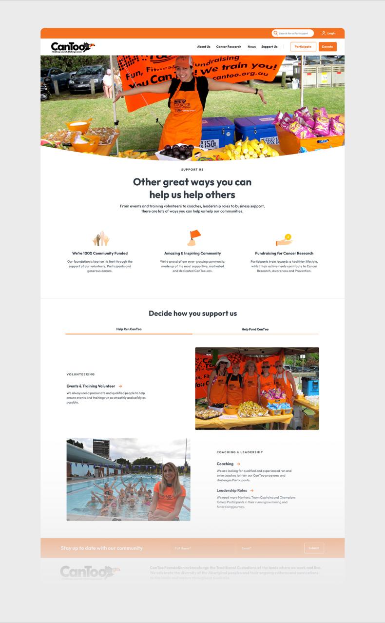We then created a full design system and online platform that not only improved the customer experience when engaging with CanToo programs and services but also simplified the donation process.