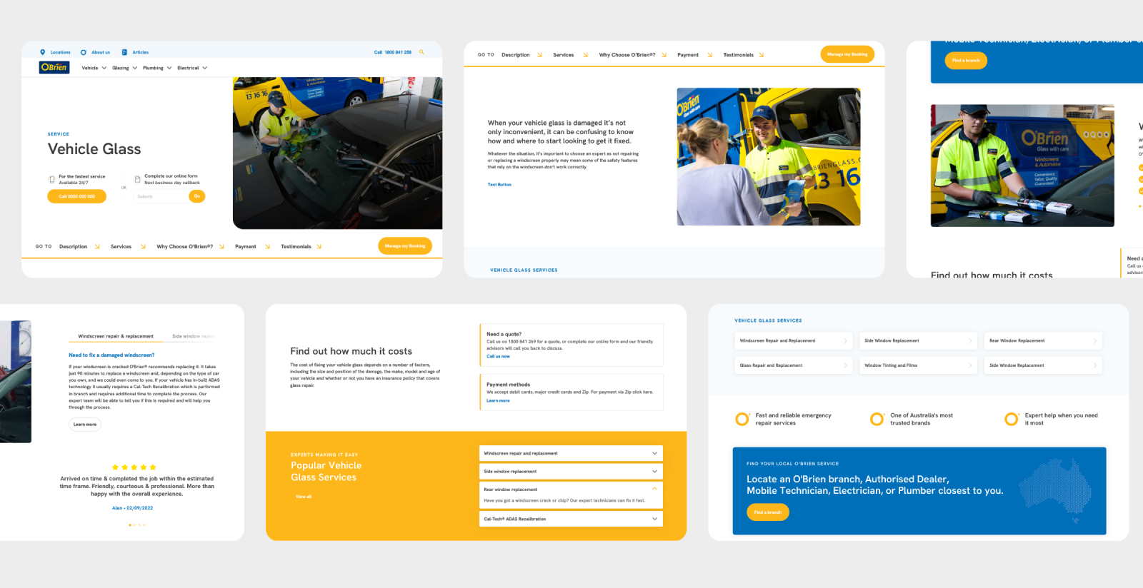 The current website felt dated and out of line with the main brand, famous for its above-the-line marketing and their focus on customer service. On top of this, the site didn’t showcase the full range of services now available through O’Brien, which included electrical, plumbing, and commercial glazing.
