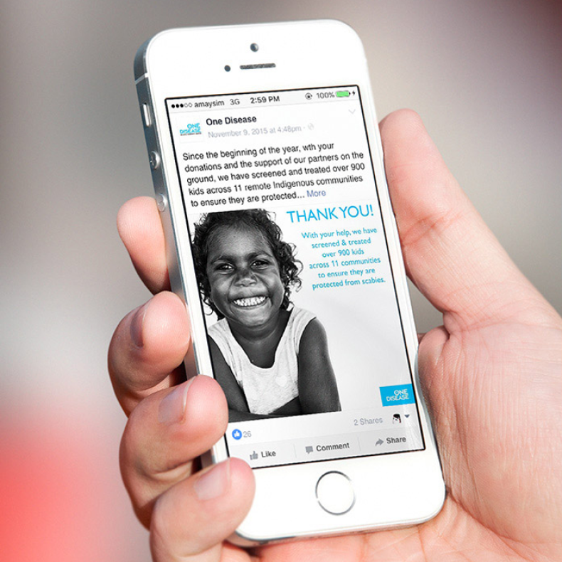 Working in close collaboration with One Disease we needed to create a digital and social campaign to raise awareness of scabies within Indigenous communities, helping encourage Australians to provide a donation and share the message.