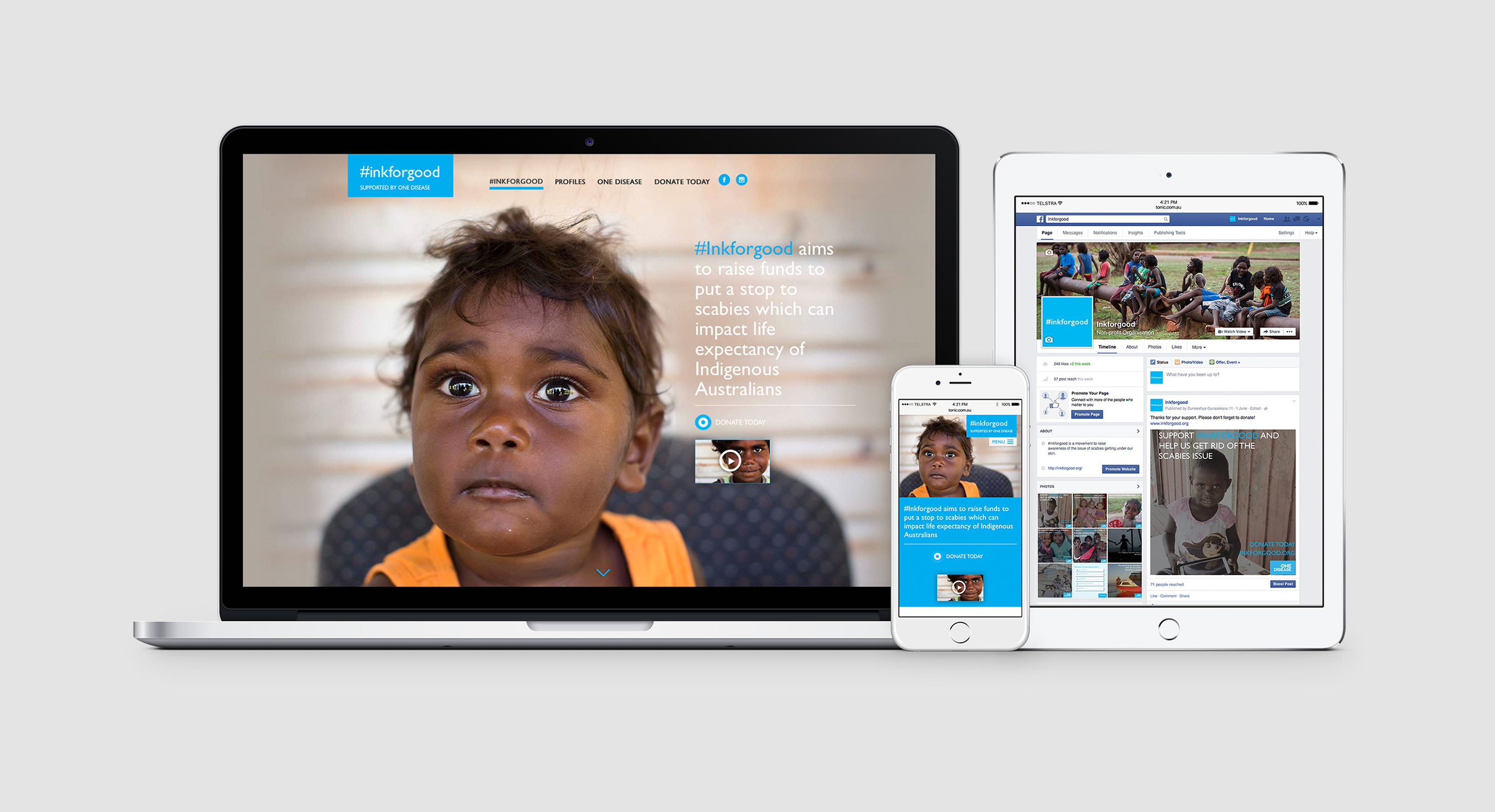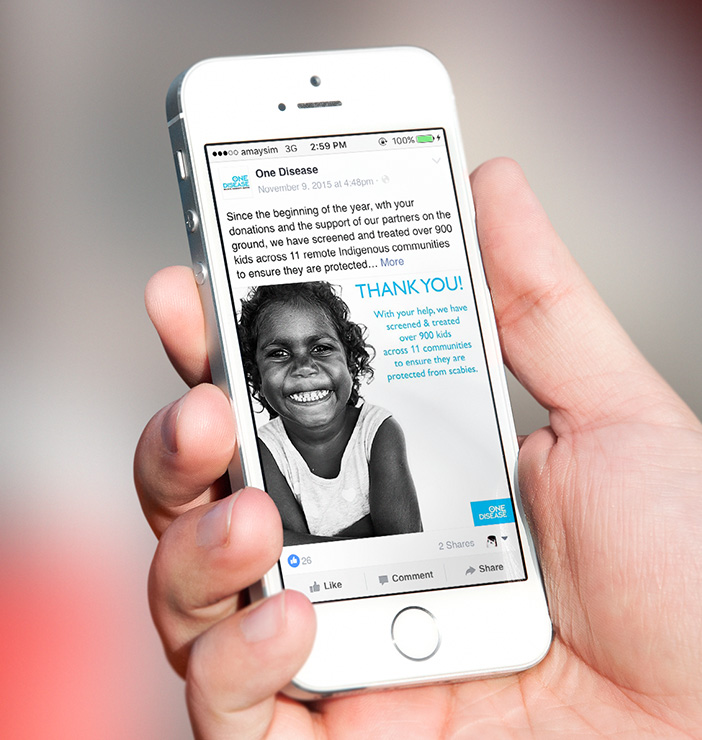Despite living in one of the world’s wealthiest countries, many indigenous Australians still struggle to exist on the poverty line. Unable to afford or have access to modern medicine, preventable skin diseases like scabies still afflict many children living in these communities. The charity ‘One Disease’ presented us with the challenge to develop an online platform to create awareness and raise funds to help stamp out scabies in these regions.