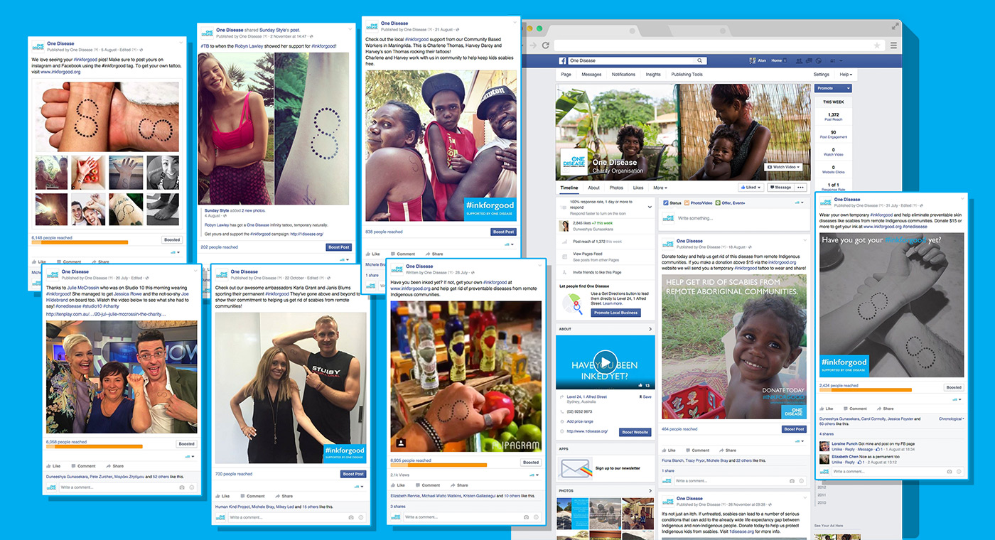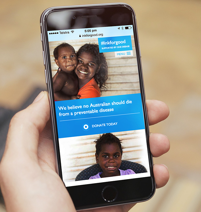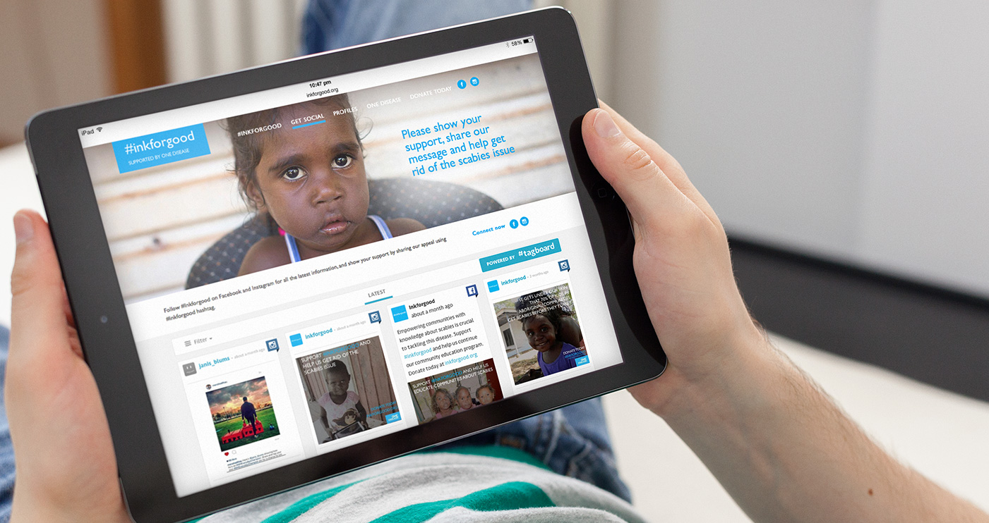 In close collaboration with One Disease, we designed and created a fully responsive #inkforgood website that would raise awareness of scabies, showcase the supporters nominated to be ‘inked’ and galvanize Australians into donating or taking part. For every visitor of the site, our message was clear - the only thing that should get under the skin of an Australian is a tattoo, not a preventable disease.
