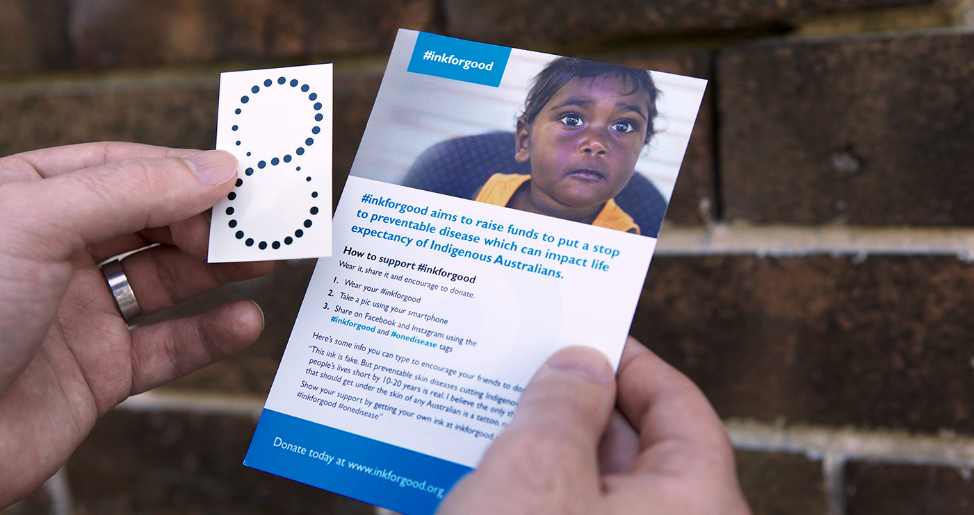 Collaborating with indigenous elders, One Disease launched the campaign #inkforgood. The idea was to use a design created by one of the community leaders and turn it into a potent symbol for the campaign – one that would raise funds by sponsoring supporters to have it permanently tattooed on their bodies.