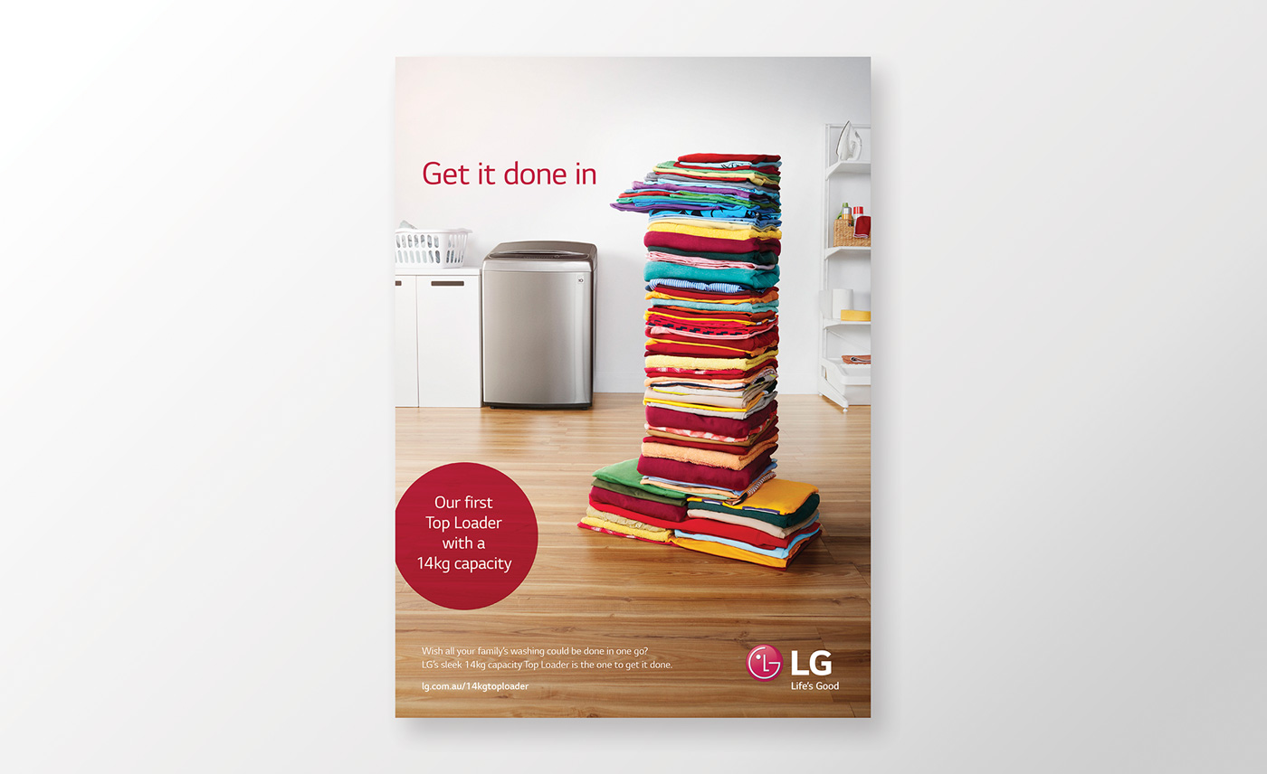 We noticed rival brands always talked about capacity rather than focus on the actual lifestyle benefit of a larger machine. Our response was to put ourselves in the customer’s shoes and communicate the clear advantage of doing a whole wash in one go. With a LG 14Kg top loader, they’d save time by not having to load a smaller capacity machine two or three times.