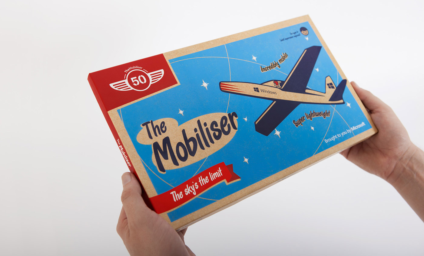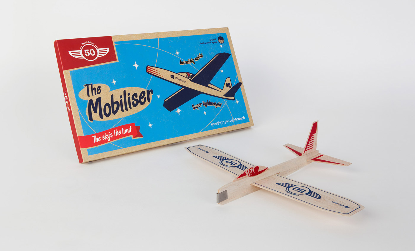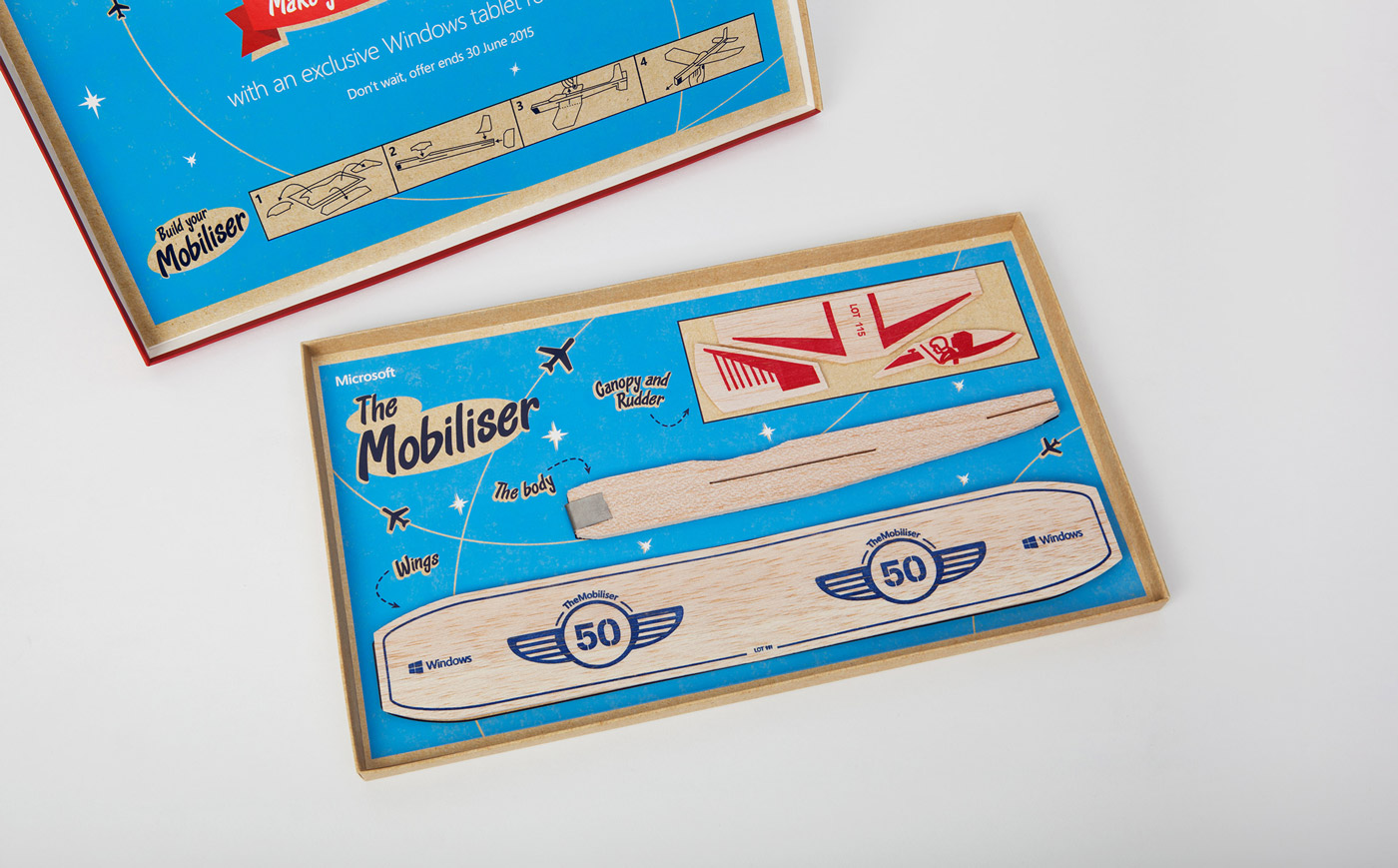 We created a low-cost, high-impact DM that helped recipients ‘GetMobile’ in a fun way. Our 1950’s style balsa wood plane kit could be assembled quickly then flown around the office. Light and flat, the retro style package could be mailed at a large letter rate, reducing the costs of the promotion.
