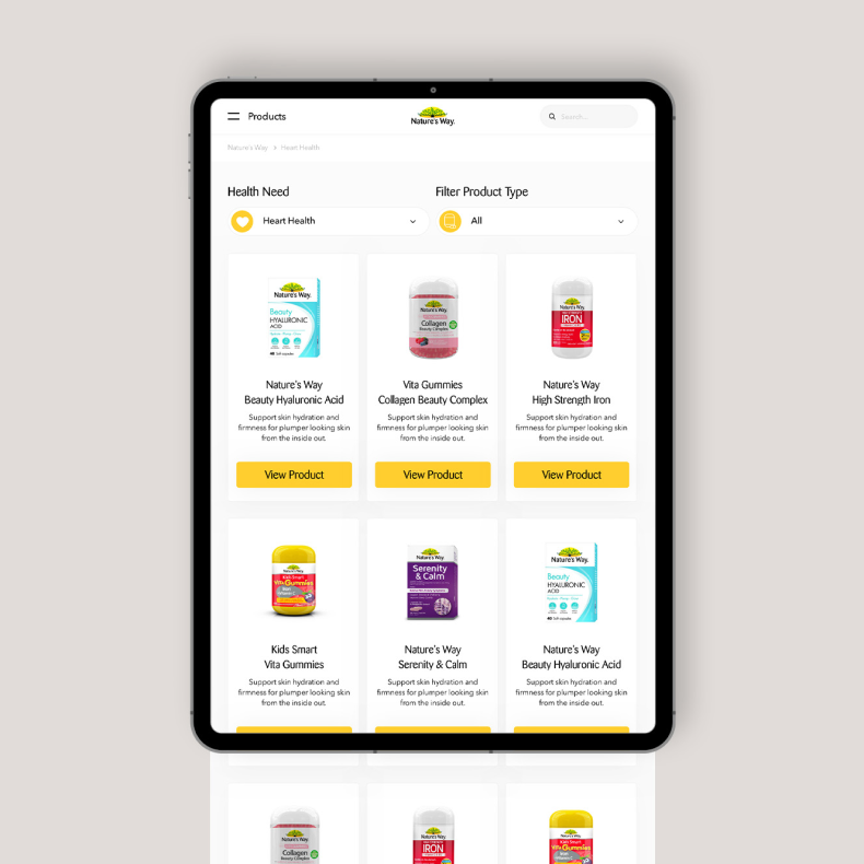 Develop a new online platform that helps to showcase the full range of Nature’s Way brands and products and provides an easier way for customers to find products relevant to their needs and requirements.