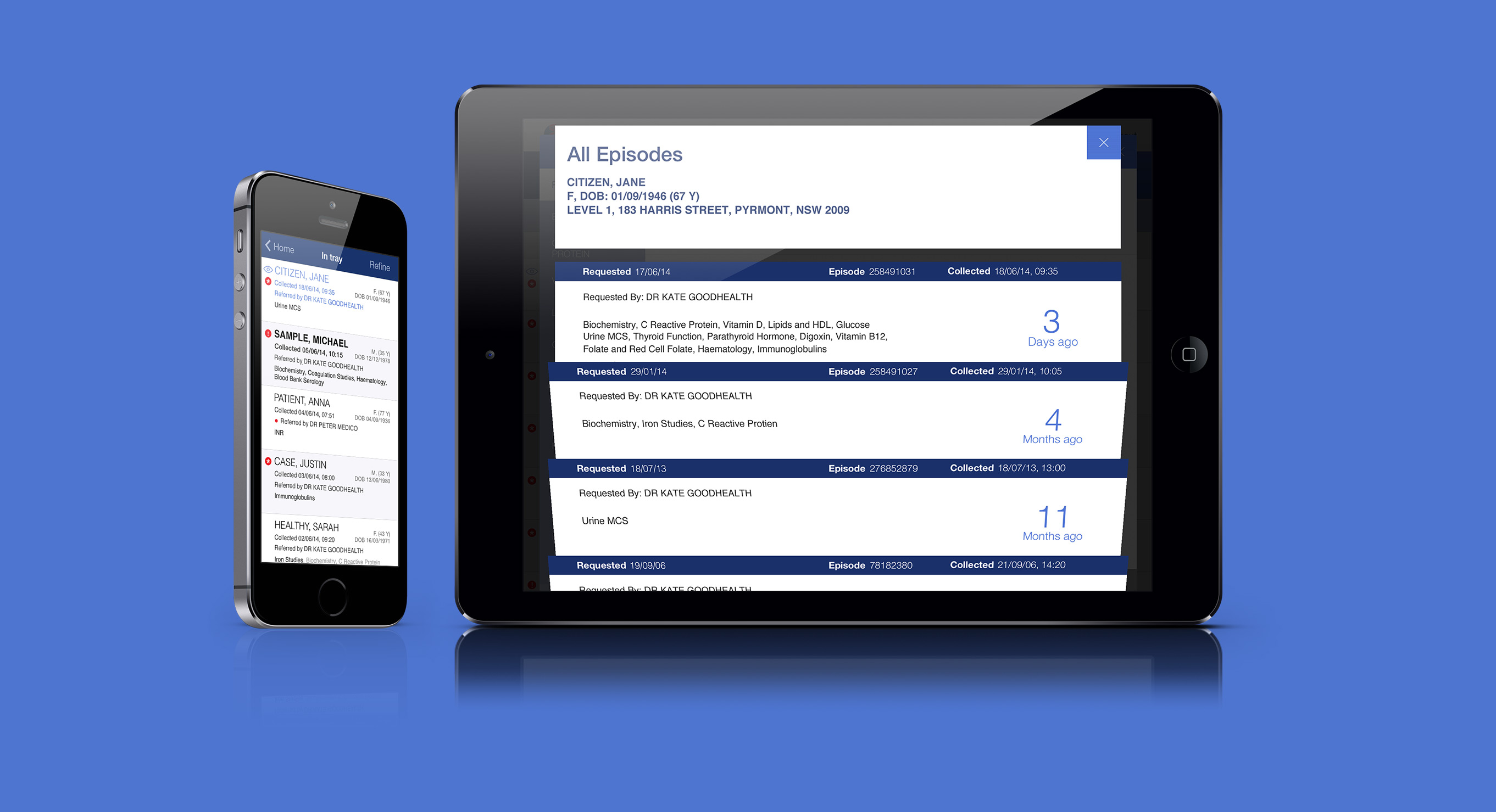 Sonic Healthcare already had an app and website to deliver pathology results to doctors but in order to become their first choice, they required an overhaul. The old “Webster” app and website was clunky to use, outdated and only available as an iPhone app. Sonic Healthcare needed a new app for mobile and tablet devices that catered for both iOS and Android users, as well as a responsive website formatted for desktop, tablet and mobile devices. Introducing Sonic DX.
