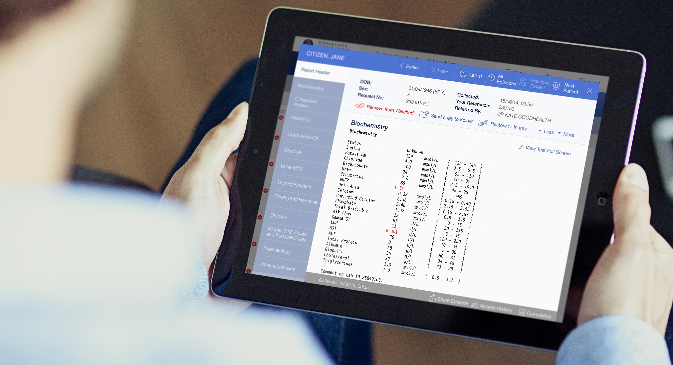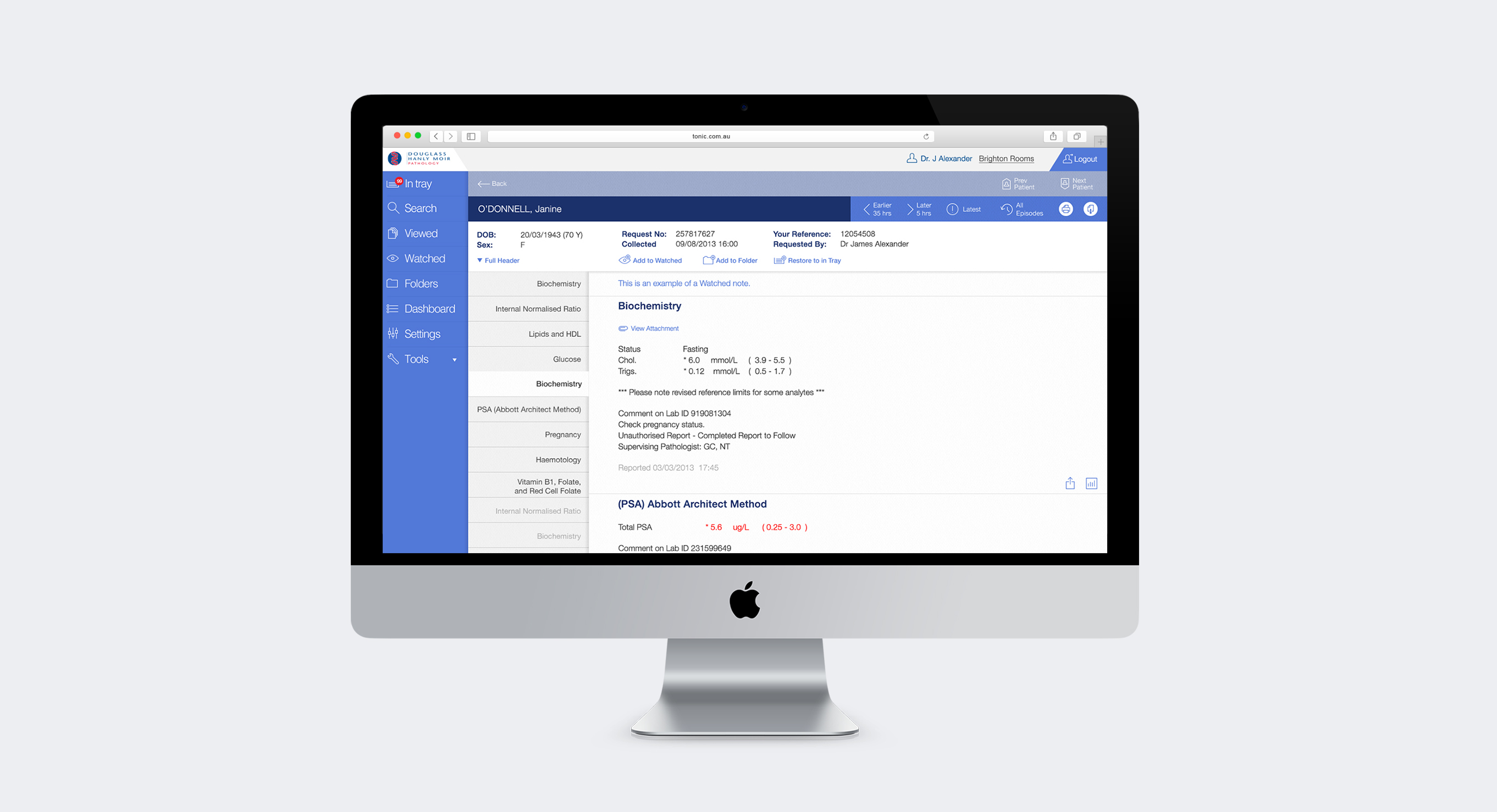 We designed and developed a new application with a special feature to enable doctors to create their own folders. Retrieving patient details and results was now much easier. Other new features included the ability to securely share results with colleagues, request additional tests electronically and the creation of a 'watch list' where doctors can tag patients and be notified as soon as the results are in.