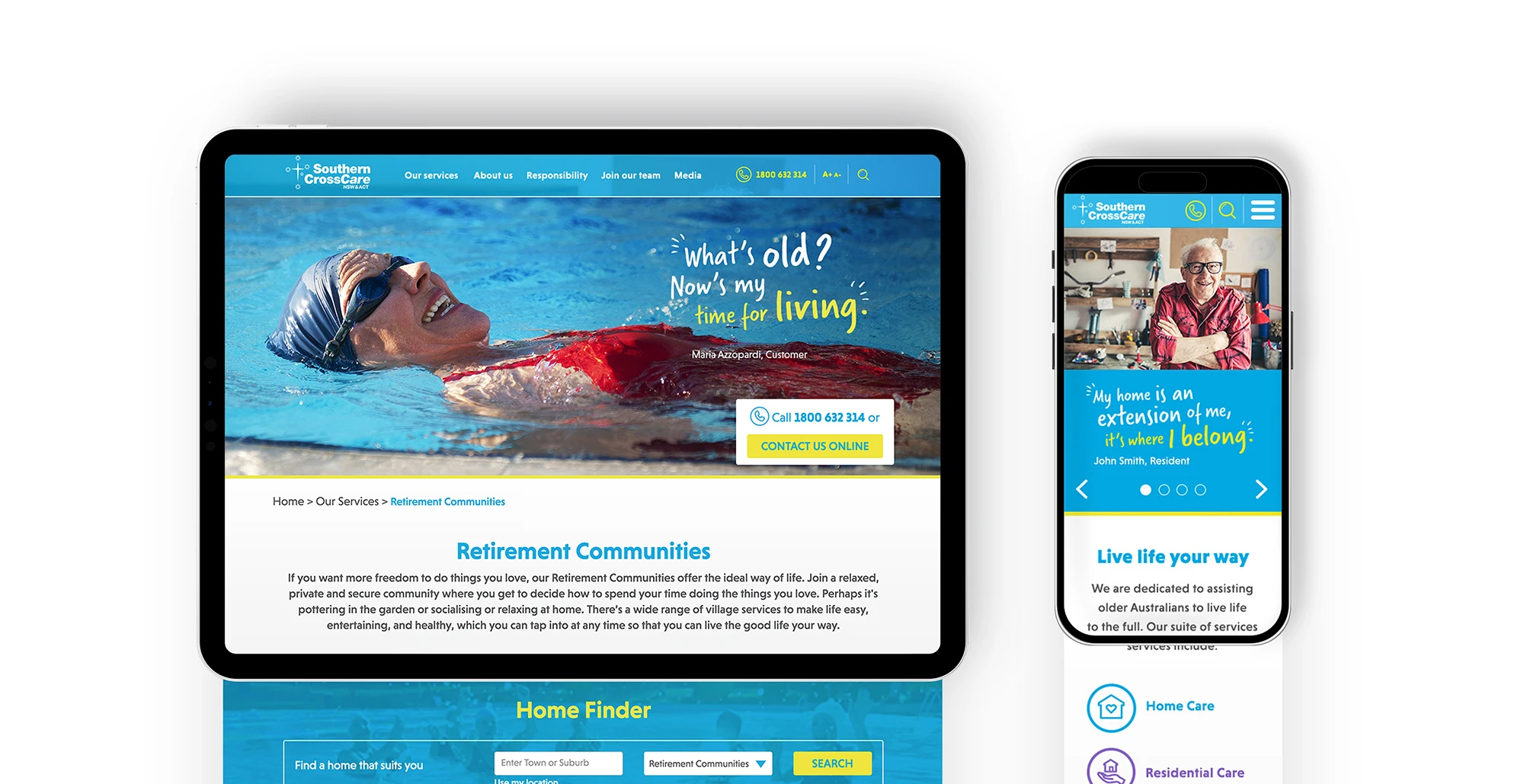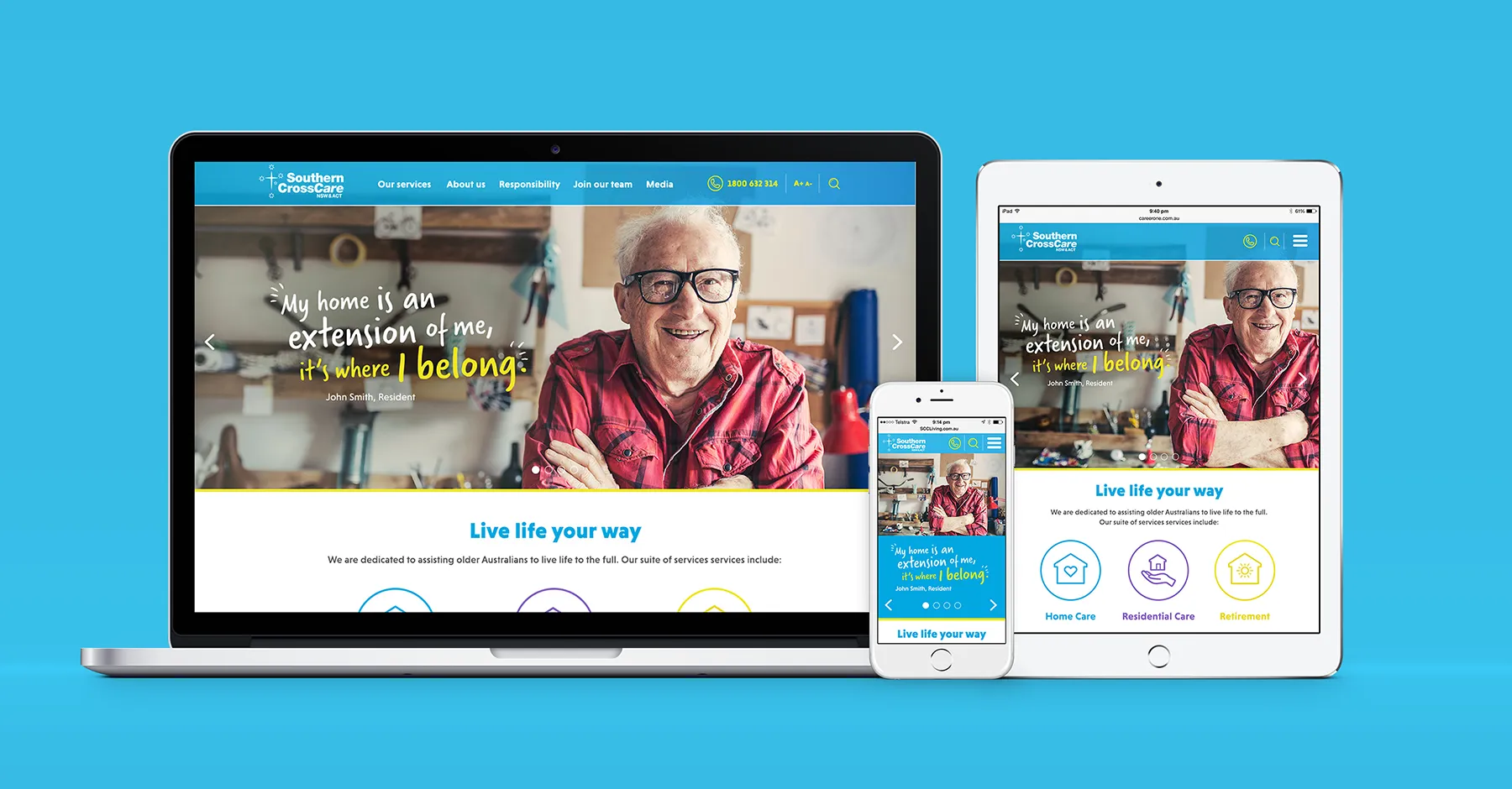 Refresh and design of the Southern Cross Care brand and website with an easy-to-use content management platform to help showcase their wide range of services and brand values for new and existing customers.